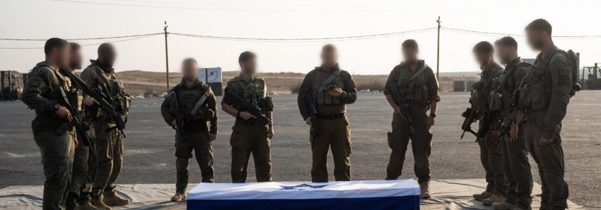 Comrades of Lt. Hadar Goldin escort a casket containing his remains out of the Gaza Strip after they were returned by Hamas. (Photo: Israel Defense Forces)