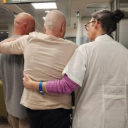 Dr. Noya Shilo, head of the Return to Life Center at Sheba Medical Center, walks with two hostages released from Gaza captivity in February 2024. (Photo: Courtesy/Sheba Medical Center)