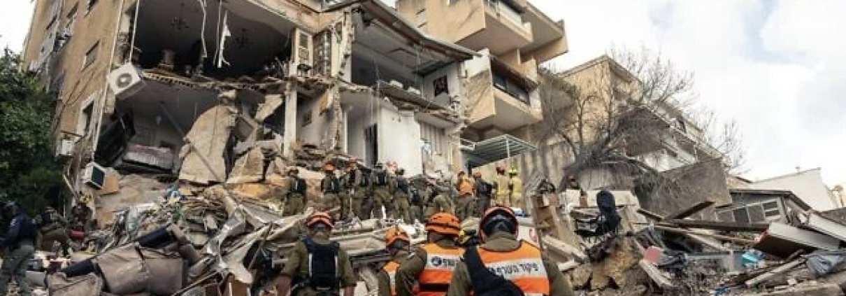 Emergency responders at the scene of an Iranian ballistic missile strike in the southern city of Dimona that wounded nearly 40 people, March 21, 2026. (Photo: Israel Defense Forces)
