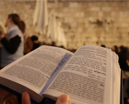 A young woman prays and reads at the Western Wall in Jerusalem. (Photo: Unsplash/Sara Rostenne)