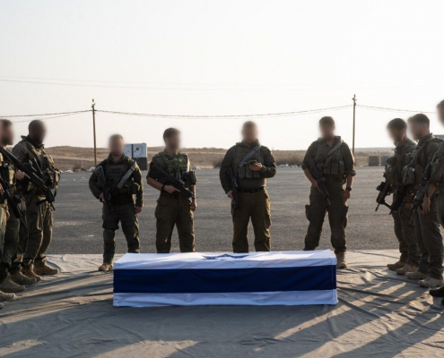 Comrades of Lt. Hadar Goldin escort a casket containing his remains out of the Gaza Strip after they were returned by Hamas. (Photo: Israel Defense Forces)